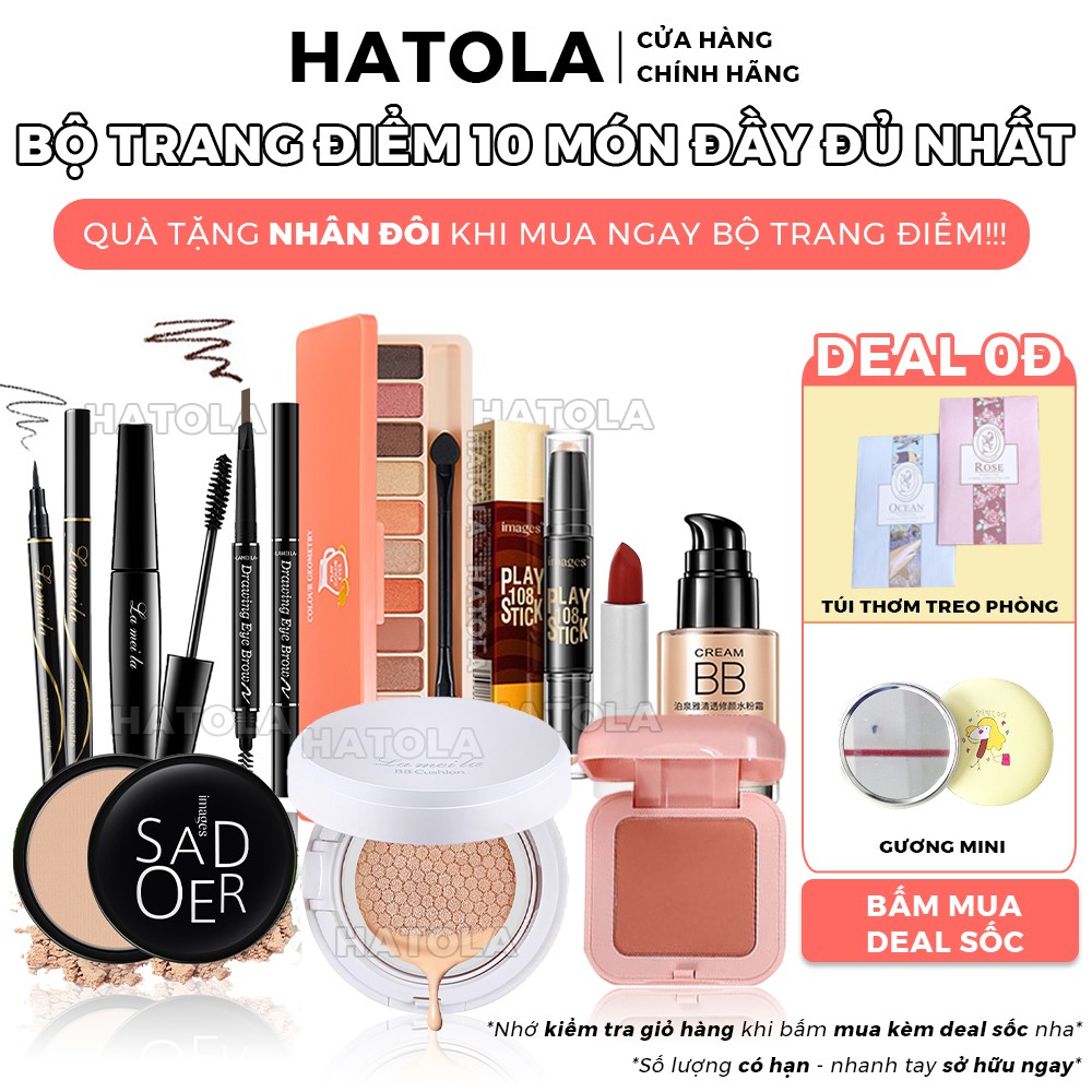Bộ trang điểm đầy đủ 10 món cơ bản từ a-z set trang điểm cá nhân HATOLA free ship